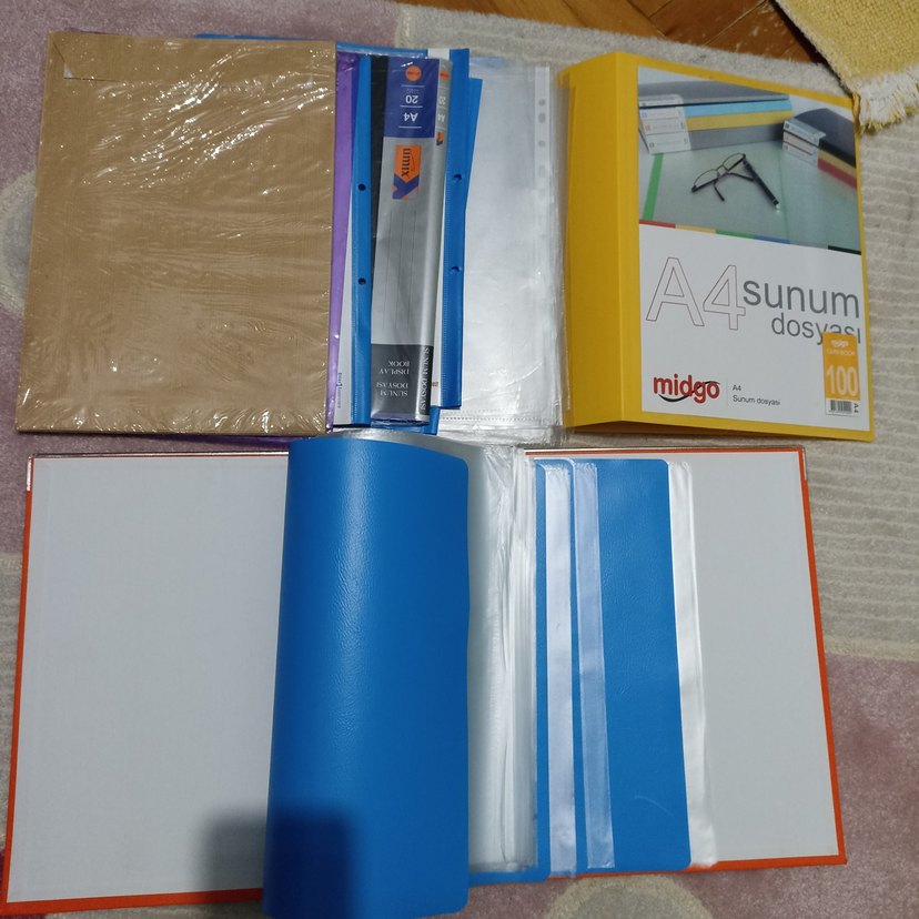 Midgo markalı, 20 şeffaf sayfa içeren açık mavi A4 sunum dosyası. Belgeleri düzenlemek için uygundur.