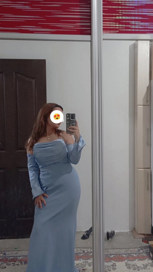 sadece 1 defa bir kaç saatliğine giydim. mezuniyet elbisesi alacağım diye satıyorum İnce mavi renkte, straplez yaka ve uzun kollu, vücuda oturan midi abiye elbisedir. İpeksi kumaştan yapılmış, desen içermeyen minimalist tarzıyla romantik akşamlar için uygundur.