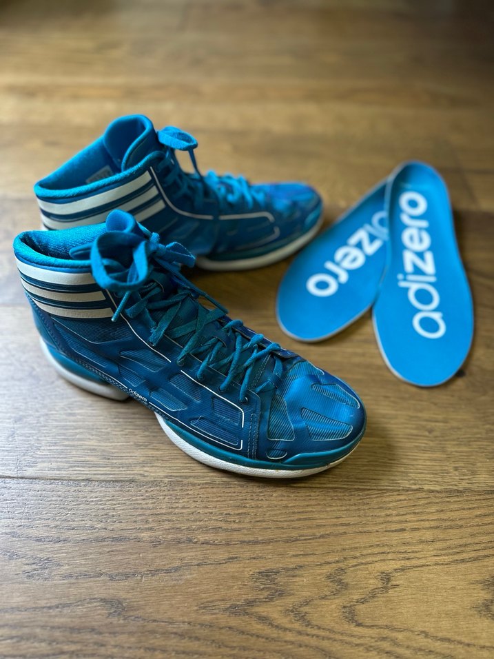 Orijinal Mavi Adidas Adizero basketbol ayakkabıları, Velcro kayış ve kauçuk taban ile sokak tarzı sunar, spor ve athleisure için uygundur. 1 tane ekstra tabanlıkla birlikte satışta. Hafif konforlu, ince fileden yapılmıştır. Az kullanıldı, durumu resimlerde detaylı olarak inceleyebilirsiniz.