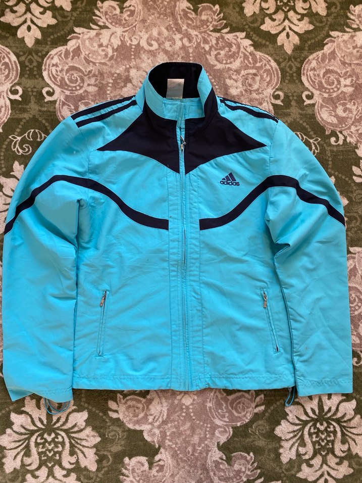 Adidas markasına ait, hafif ve rahat yapısıyla günlük kullanım ve spor için uygun fermuarlı ceket. Canlı mavi rengi ve siyah detaylarıyla klasik Adidas çizgilerini taşır. Dik yaka tasarımı rüzgâra karşı koruma sağlar. Ön kısmı fermuarlı, yan cepleri fermuarlıdır. • Marka: Adidas • Model: Spor / Outdoor Ceket • Renk: Turkuaz – Lacivert detaylı • Durum: İkinci el, genel durumu iyi • Detay: Omuzlarda Adidas şeritleri, göğüste logo Günlük kombinler, yürüyüş ve hafif spor aktiviteleri için idealdir.