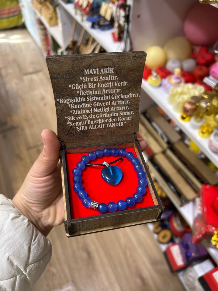 Stok durumu sormadan alım yapmayınız. Mavi Akik taşlarından yapılmış boncuklu bileklik, stresi azaltır, enerji ve özgüveni artırır. Bohem tarzda, sade ve rahat kullanıma uygundur.