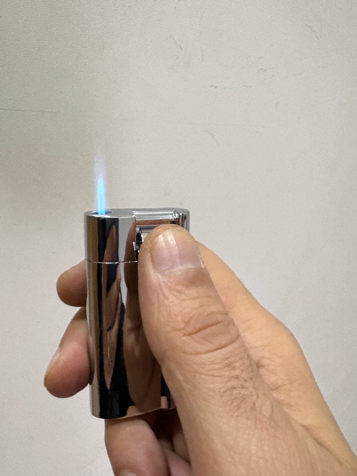 Parlak mavi renkte, kolay kullanımlı ve güvenilir alev çıkaran çakmak.