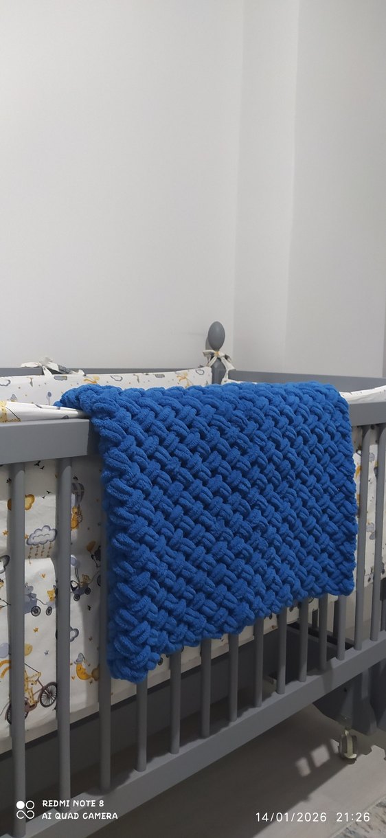 Renkli mavi örgüden yapılmış, yumuşak ve rahat çocuk battaniyesi. Desensiz sade tasarımıyla klasik bir görünüm sunar. ölçüleri 100×110 cmdir. -3. +3 cm oynayabilir. bebeğinize kış ayında çok güzel bir tercih olabilir. başka renklerde de örülür.