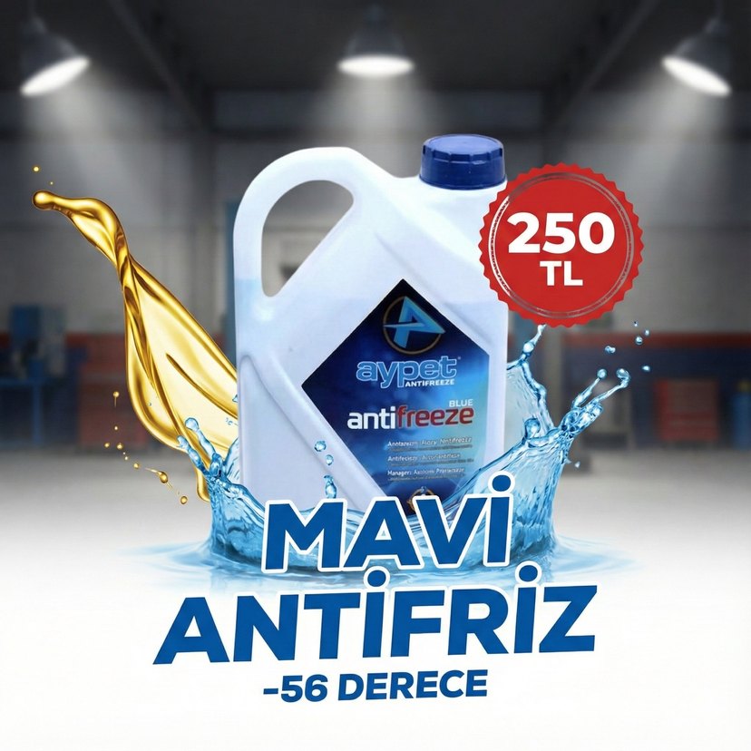 -56 dereceye kadar etkili mavi antifriz, 250 TL kapasiteli. Soğuk iklimler için uygundur.