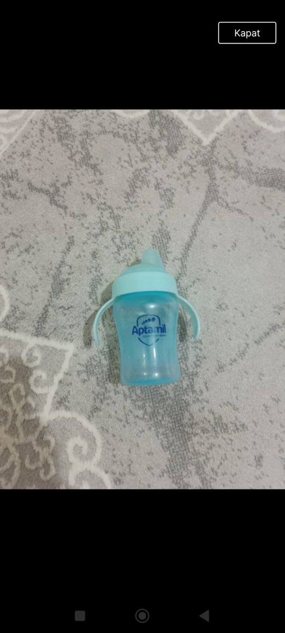 Tutma saplı pastel mavi Aptamil bebek biberonu, besleme kolaylığı sağlar.