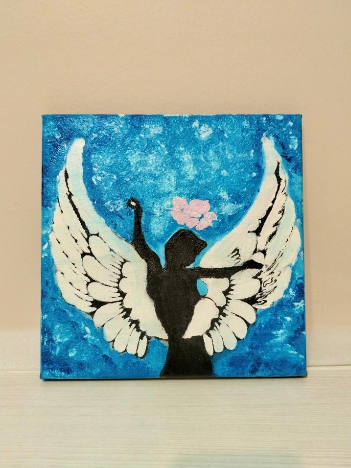 Siyah tuval üzerine 25*25 cm deniz dalgası sesinden huzur bulan melek kanatlı kız siluet tasarımım Instagram hesabımdan takip edebilirsiniz