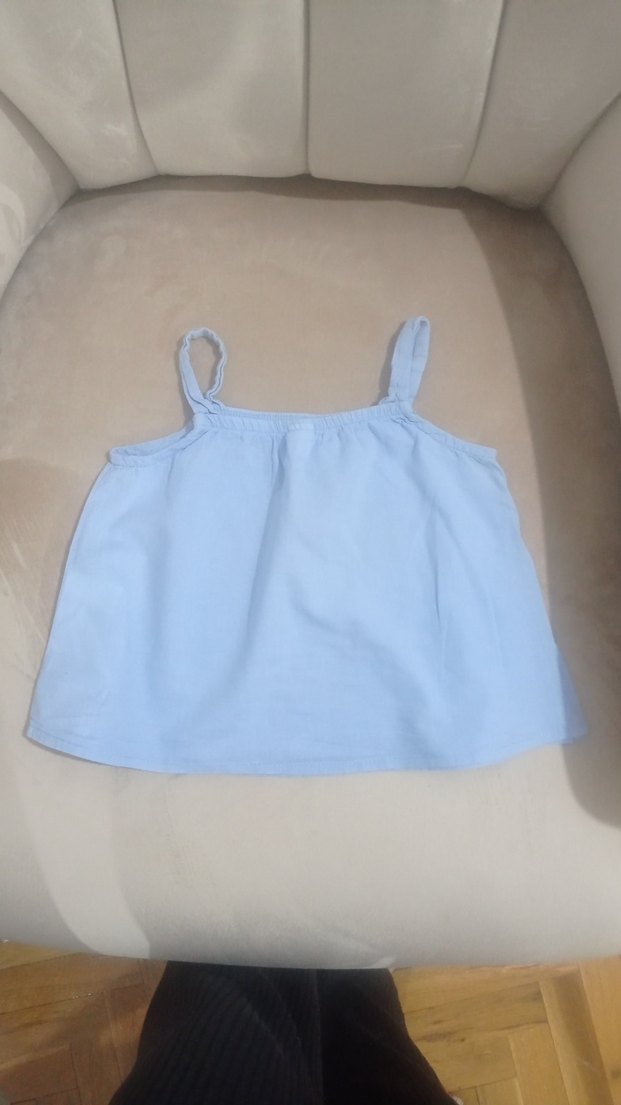 Yumuşak kumaştan yapılmış, ince askılı mavi çocuk atlet. Sıcak günler için uygun.