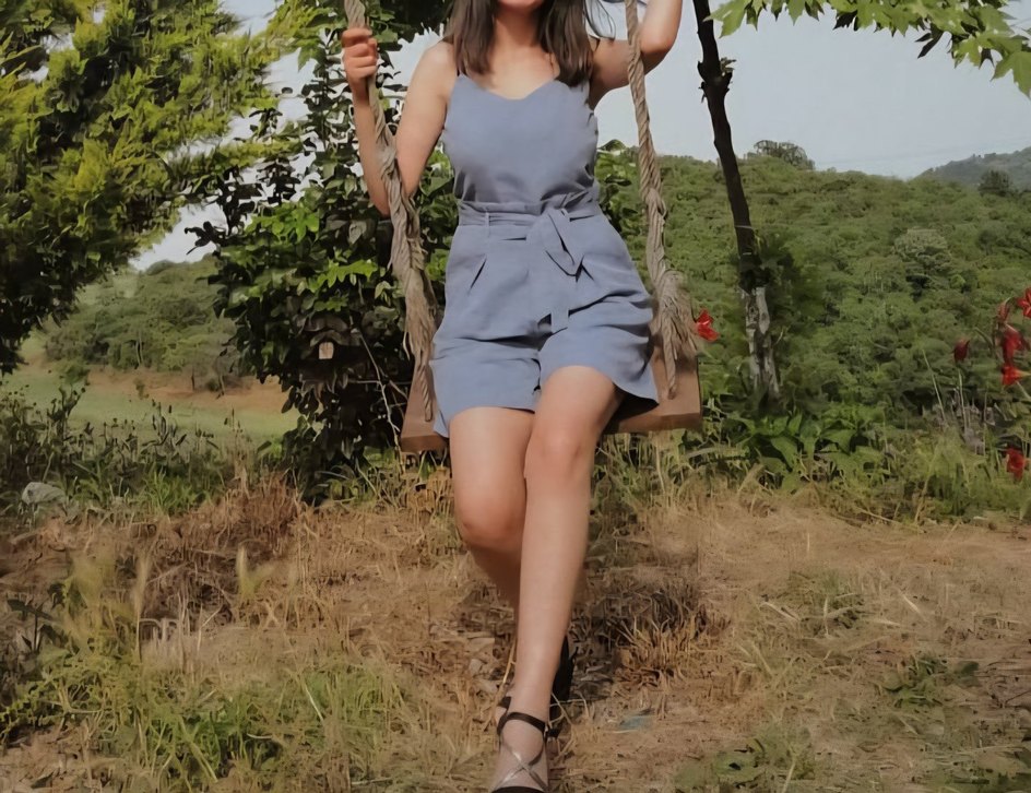 Mavi Askılı Kısa Tulum, Kemerli, V Yaka
