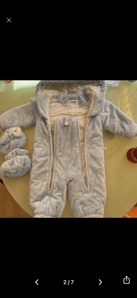 Nvi renkte, yumuşak ve sıcak kumaştan yapılmış, kürk detaylı bebek tulumu. Kapüşonlu ve eldivenli, sade sokak stili tasarım. ❄️