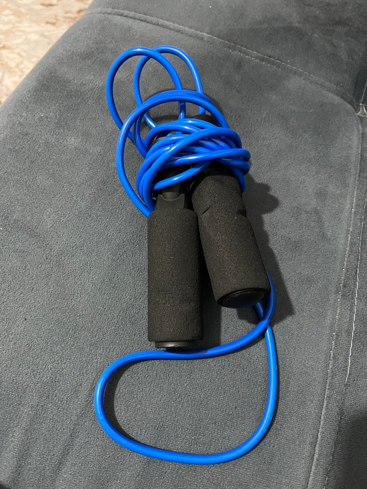 Yumuşak siyah köpük saplı canlı mavi atlama ipi, egzersiz sırasında rahat tutuş sağlar. ♂️