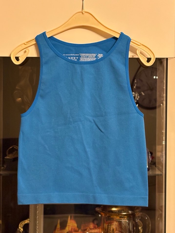 Mavi, düz kesim, bisiklet yaka ve kolsuz atlet. Primark ürünü. Spor büstiyeri olarak aldım ama günlük de giyilebilir. Hiç kullanılmadı