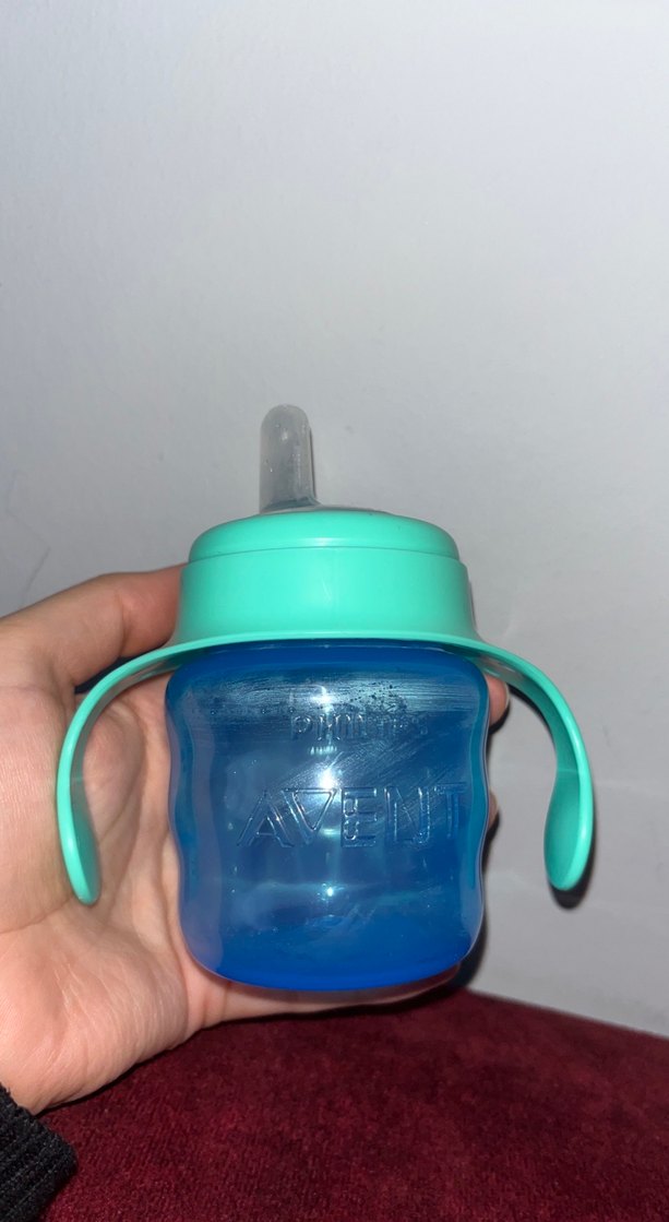 Mavi Avent bebek biberonu, kulplu ve yumuşak silikon emzikli, kolay tutuş ve rahat besleme sağlar. Bebeğime su içirmek için denedim içmedi yıkadım kaldırdım