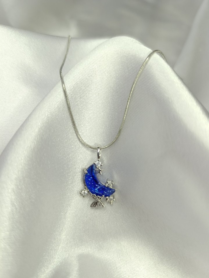 Mavi Ay ve Kelebek Gümüş Kolye
