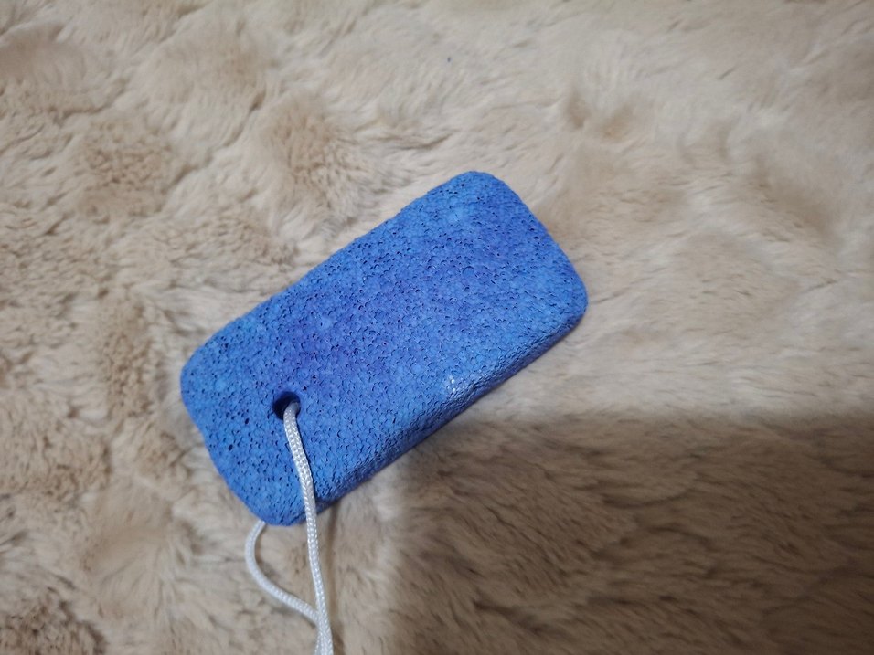 Dokuya sahip mavi banyo ayak ponza kolay saklama için ipli. Banyo sırasında nazikçe peeling sağlar.