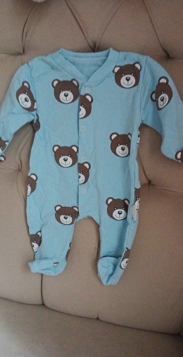 Mavi renkli, ayı baskılı bebek tulumu, uzun kollu, yuvarlak yakalı ve düğmeli. Yumuşak ve sıcak kumaştan üretilmiş, rahat bir sokak stili sunar.