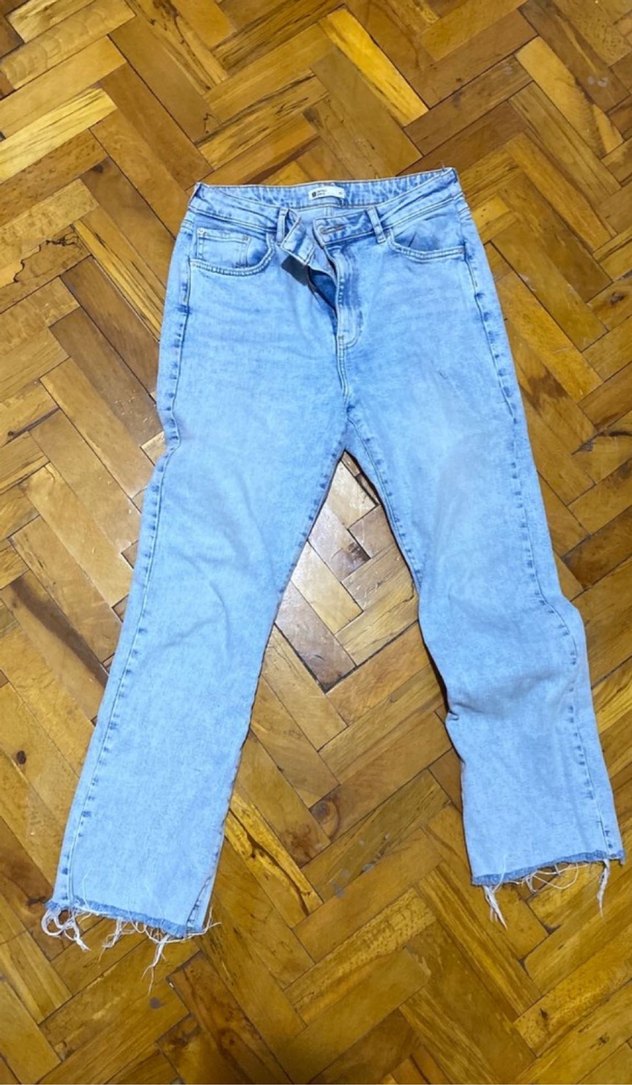 42 beden yazıyor 40 beden uyumlu kalçası tam oturuyor bana kısa olduğu için satıyorum süper kalıp Bağcıklı detaylı, pastel mavi batik desenli, bol kesim kadın denim pantolon. Midi boyda, günlük sokak stili için uygun.