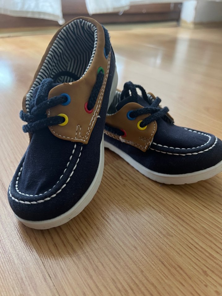 Bağcıklı, bağcıklı detaylı koyu mavi erkek çocuk günlük ayakkabısı, lastik tabanlı ve batik desenli, sokak stili.