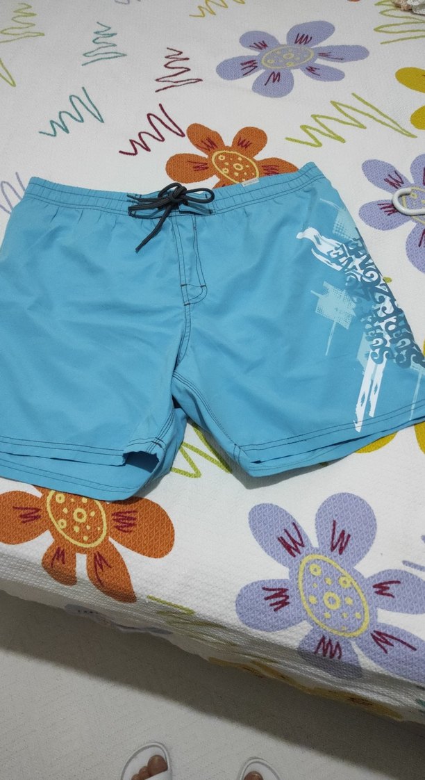 Mavi renk, bağcıklı ve bol kesim erkek deniz şortu, plaj ve sokak stiline uygun. beli 45 cm
