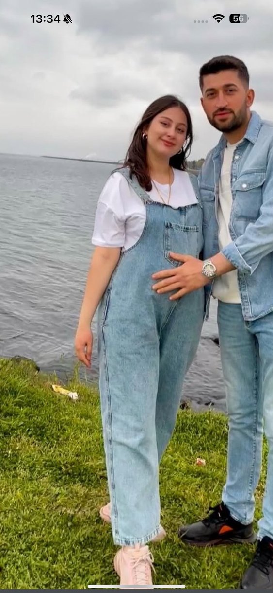Bağcıklı, kısa kollu, bisiklet yaka, bol kesim mavi pastel denim hamile tulum. Günlük kullanıma uygun rahat ve salaş model.