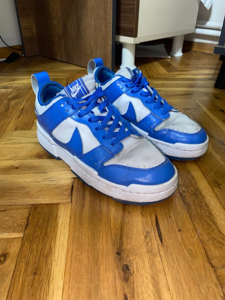 Koyu mavi ve beyaz renkte, bağcıklı, kauçuk malzemeden üretilmiş kadın spor ayakkabısı. arkasi icerden vurunca aynı renk parça koydurmustum sorun çözüldü