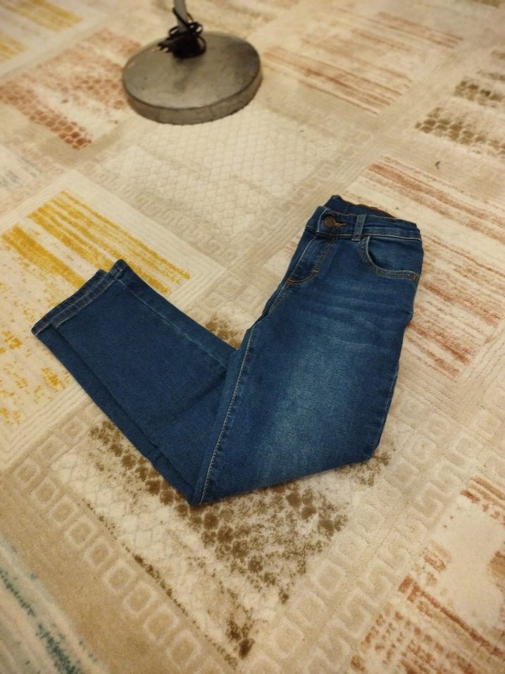 Mavi denim kumaştan, normal kesim ve boyda kot pantolon. Bağcıklı detaylı, gündelik kullanıma uygun rahat bir model.