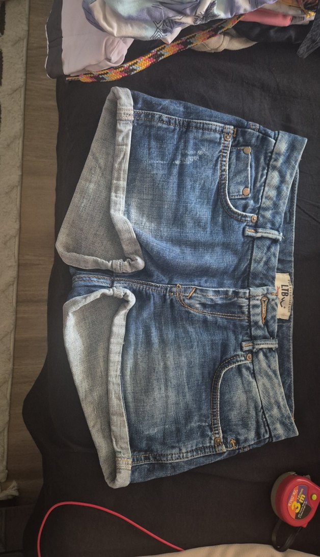 Kadınlar için bol kesim, mavi ve gri tonlarında batik desenli kot şort. Bağcıklı detaylı, kısa ve mini boyda, günlük sokak stiline uygun. beli 37 cm boyu 25 cm
