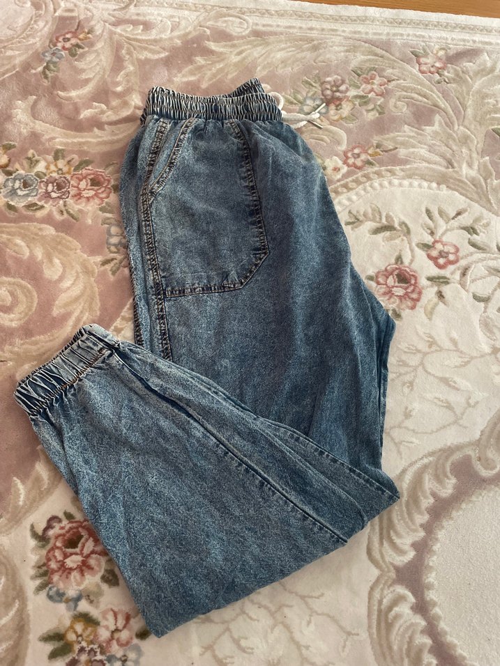 Mavi denimden, bağcıklı pantolon Bağcıklı bel ve bağlamalı desenlerle günlük sokak stili için uygun.etikette 44 beden yazıyor fakat 38-40 bedene uygundur marka temsili