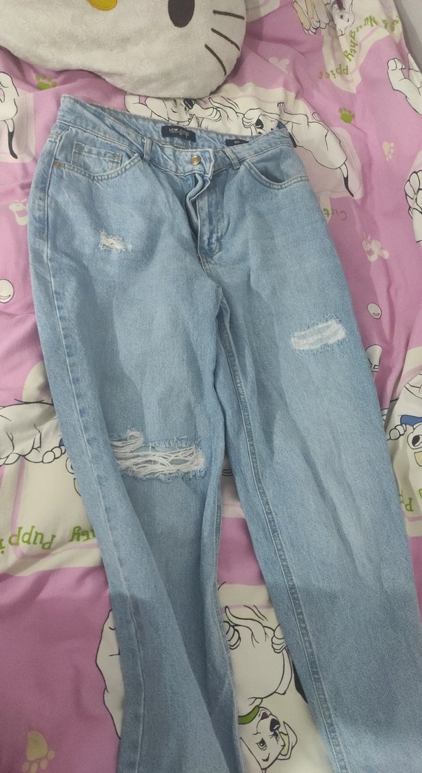 Mavi bağcıklı, salaş kesim, normal boy midi kot pantolon, günlük rahat sokak stili için uygun.