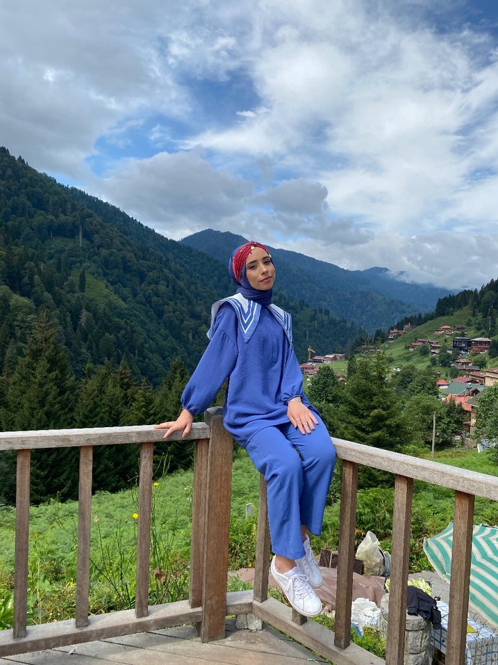 Mavi Bağcıklı Uzun Kollu Salaş Kadın takım