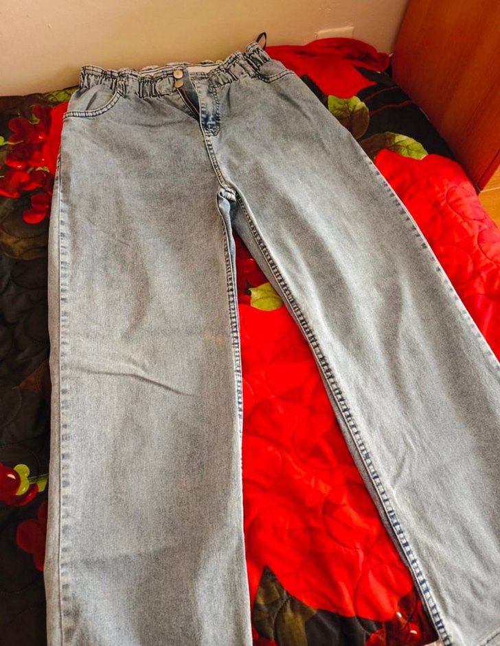 Mavi Bağlama Desenli Düğmeli Salaş Kadın Kot