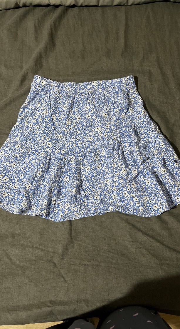 Mavi bağlama desenli mini etek, bol kesim ve fırfır detaylarına sahip, yumuşak sentetik kumaştan yapılmıştır. Bohem tarzda, günlük dış mekan kullanımı için uygundur.
