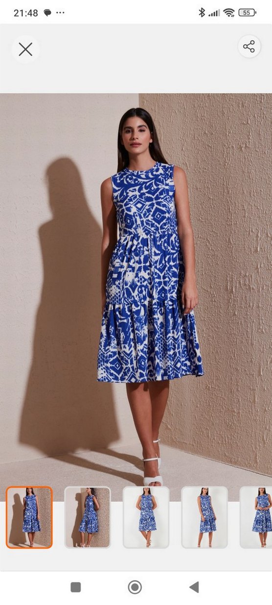Mavi Bağlama Desenli Kolsuz Fırfırlı Elbise