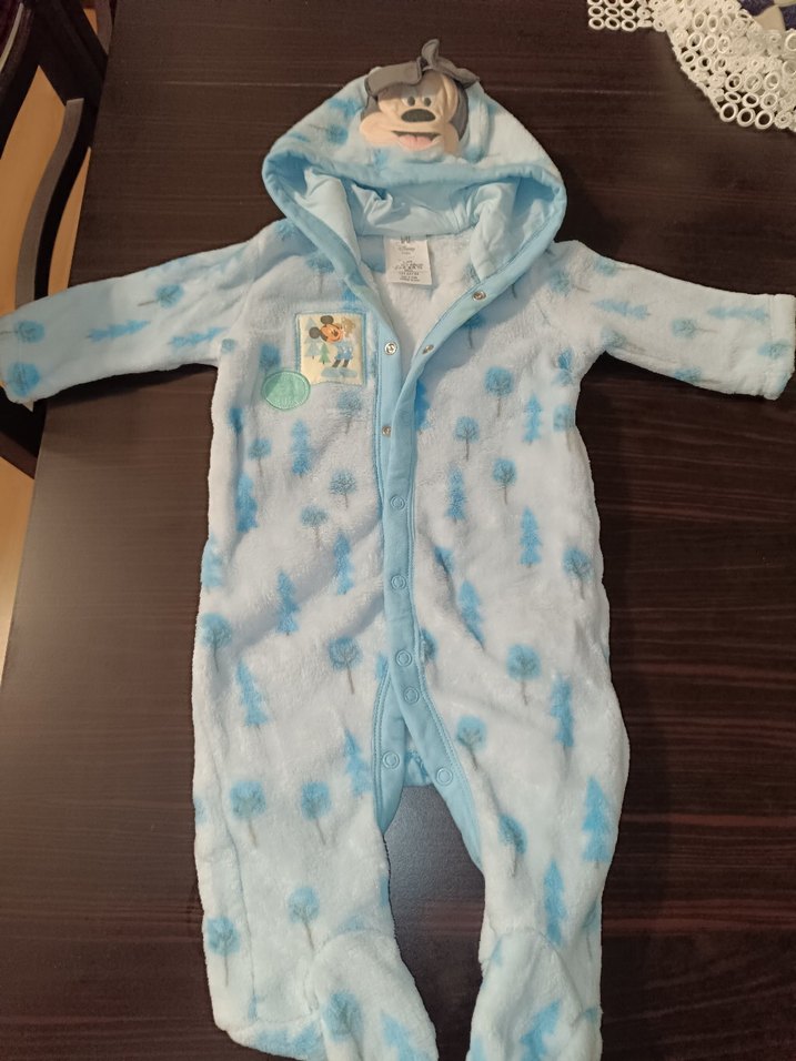 Mavi Bağlama Desenli Kürklü Bebek Tulumu