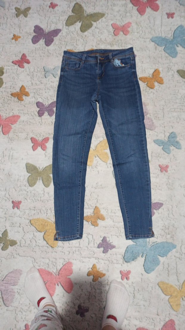 Hafif mavi tonlarda, bağlama desenli, regular fit kesim ve fermuarlı detaylara sahip denim pantolon. Günlük kullanıma uygundur.