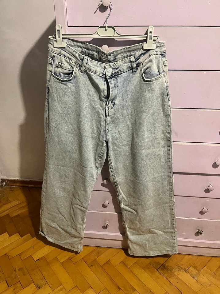 Mavi Bağlama Desenli Salaş Midi Kot Pantolon