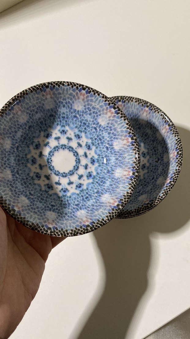 Koyu mavi bağlama deseniyle süslenmiş, geleneksel tarzda tabak seti. Yemek sunumu için uygundur. ️