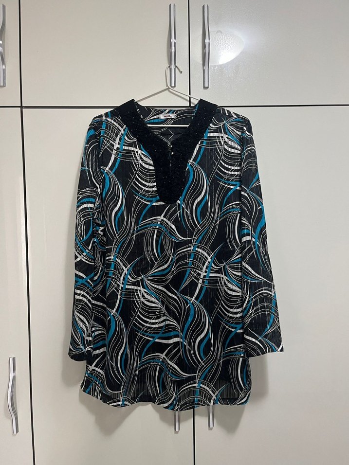 Mavi Bağlama Desenli Uzun Kollu Tunik Bluz