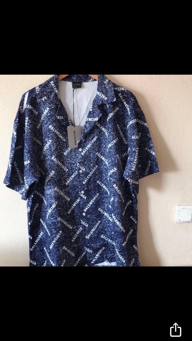Bu erkek gömlek, bol kesim, kısa kollu ve V yaka tasarıma sahiptir. Parlak mavi bağlama desenli, düğmeli ön kısmı ve sentetik kumaştan üretilmiştir.