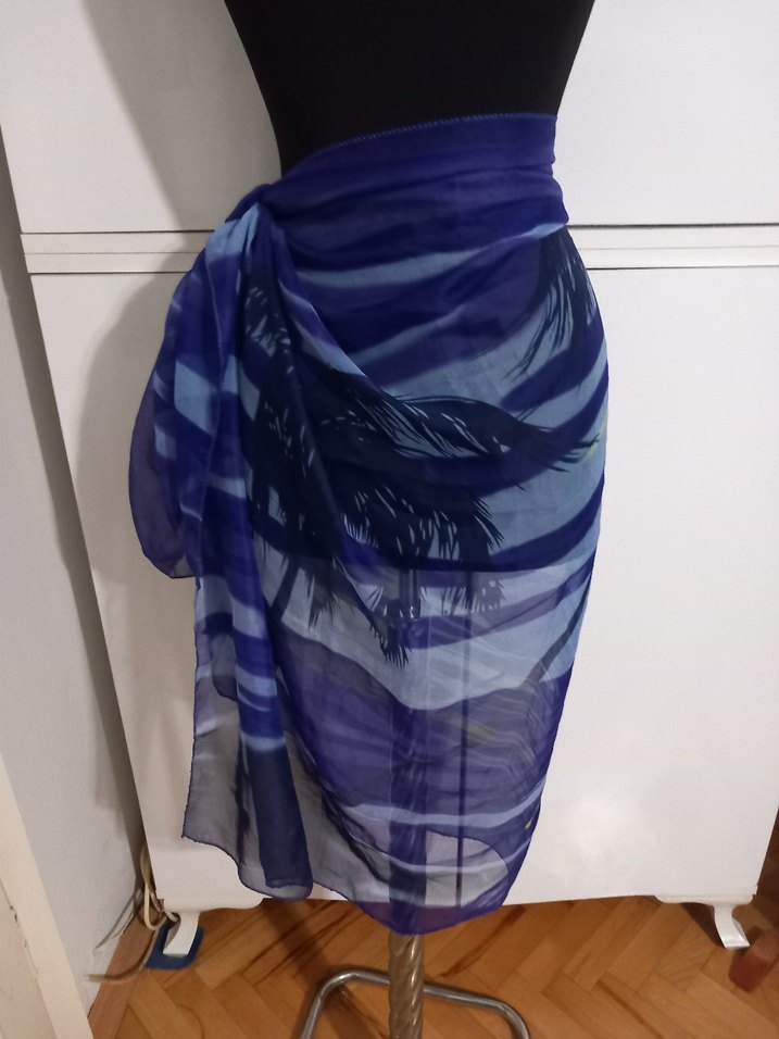 Mavi bağlamalı,tasarıma sahip bohem stilde, bağlamalı ve salaş kesim maksi pareo. Canlı koyu renkleriyle dış mekan kullanımı için uygun.