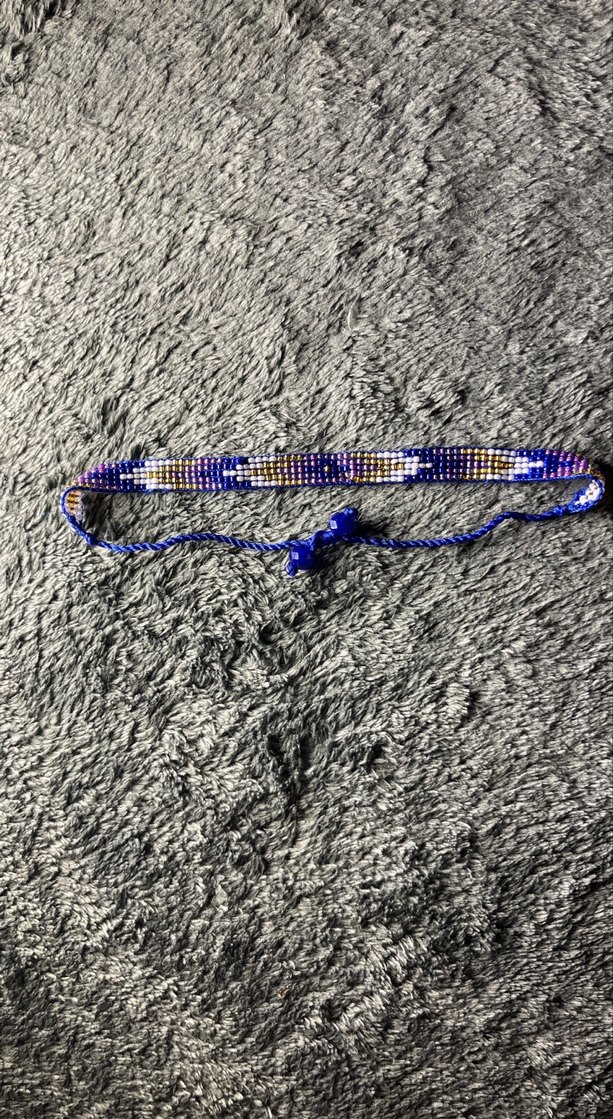 Mavi bağlamalı, bağlama kapanışlı, bohem tarzda boncuklu bileklik, açık hava kullanımı için uygundur.