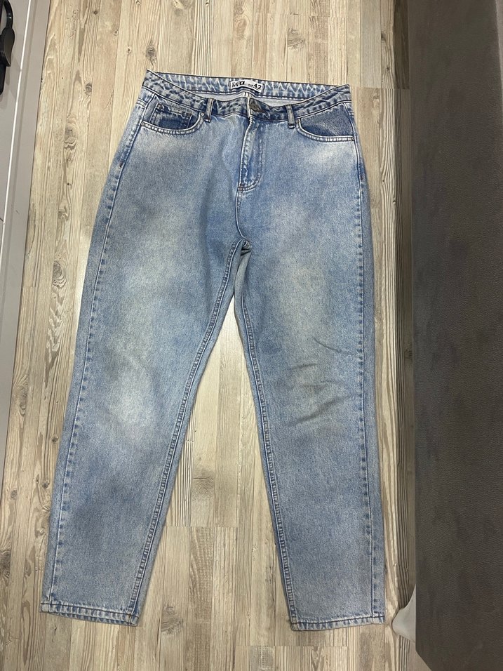 Rahat kesim, midi boy, pastel mavi bağlamalı boya desenli denim jean, gündelik kullanım için şık ve rahat bir sokak stili sunar.