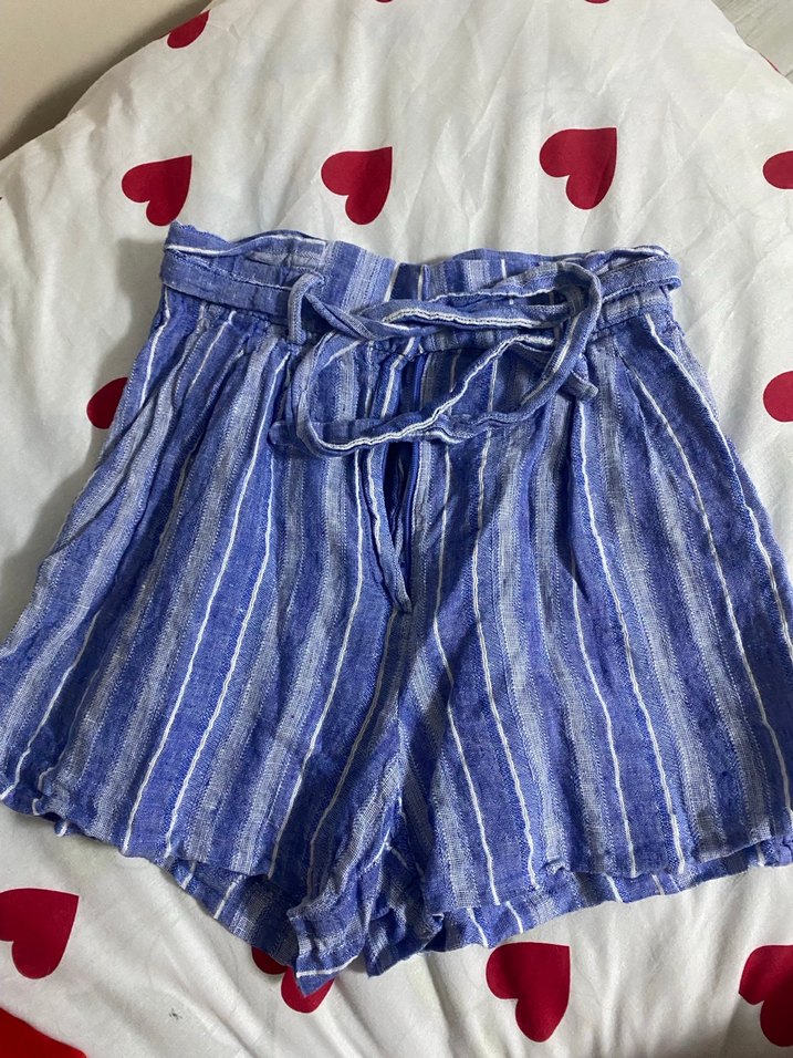 Yumuşak pamuktan yapılmış, pilili ve bağlamalı, pastel mavi batik desenli şort Hmden aldım 34 beden büyük oldu bana kusuru yoktur Uzunluk:38 Bel:32 Kalça:52