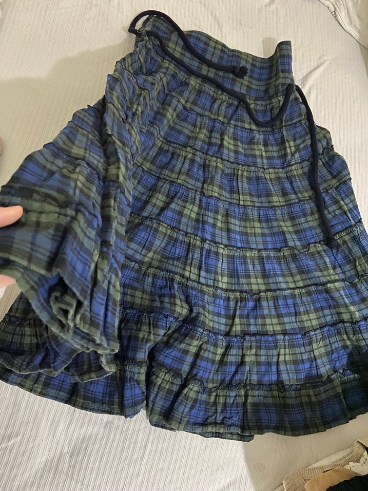 Mavi Bağlamalı Pileli Midi Etek
