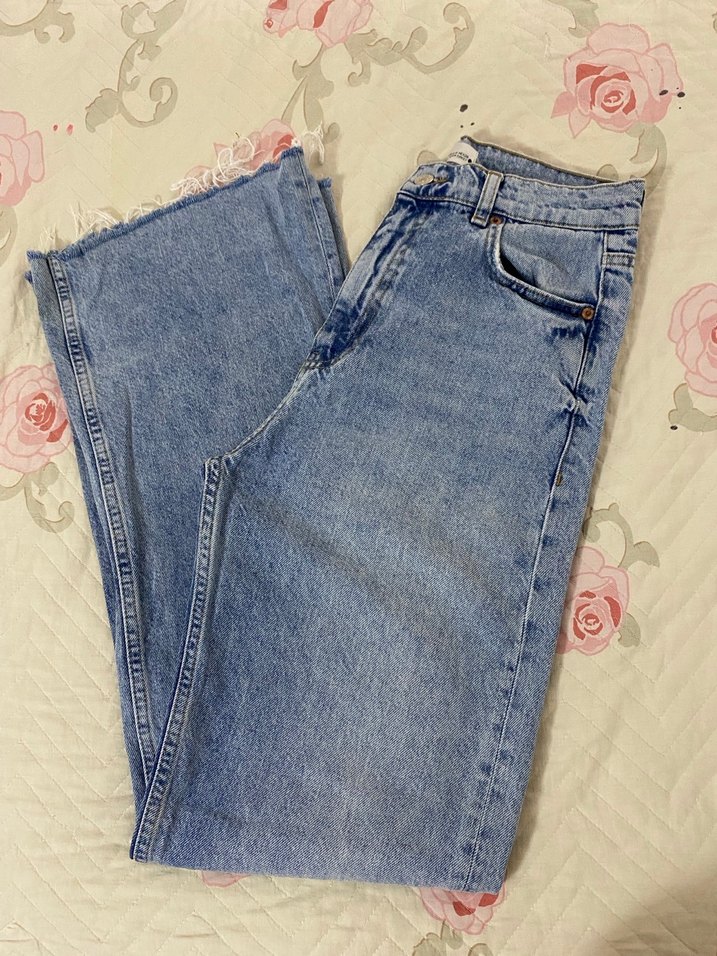 Mavi Bağlamalı Salaş Midi Kadın Kot Pantolon