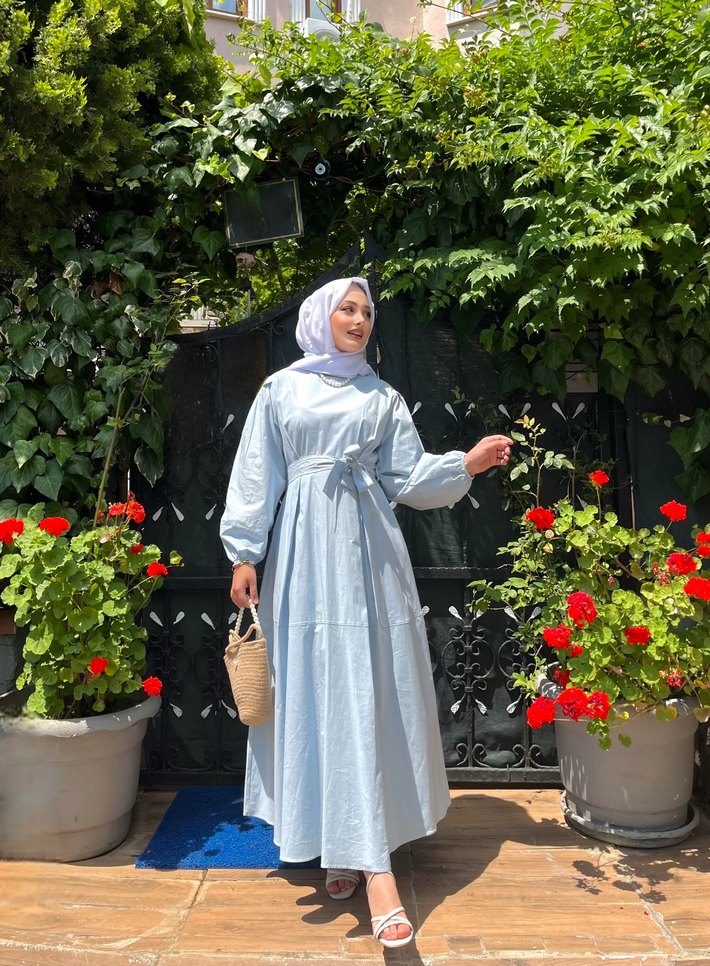 Mavi Bağlamalı Uzun Salaş Elbise