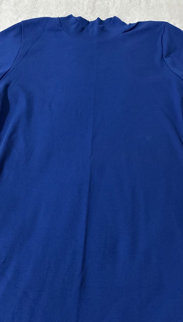 Koyu mavi renkte, balıkçı yaka esnek kumaş triko göğüs 46 boy 86 cm