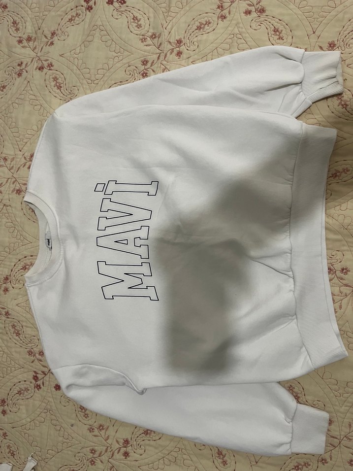 Mavi Baskılı Beyaz Kadın Sweatshirt