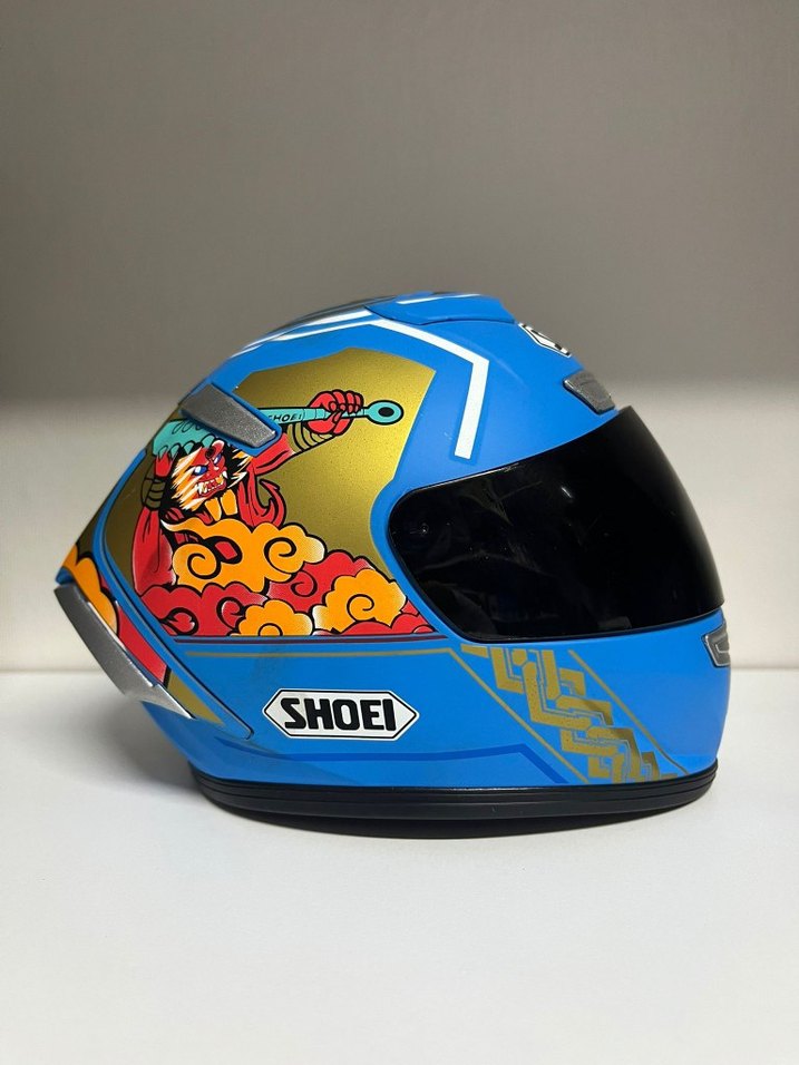 Canlı mavi renkli, baskılı avant-garde tasarımlı bu biker kask seramik malzemeden üretilmiş kedi kaskı