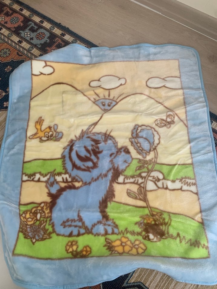 Pastel mavi renkte, sevimli köpek ve doğa desenli baskılı çocuk battaniyesidir. Yumuşak ve sıcak dokusuyla konfor sağlar. Kullanılmadı defosuzdur
