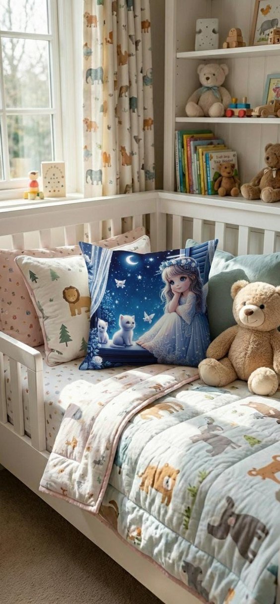Mavi Baskılı Çocuk Yastık